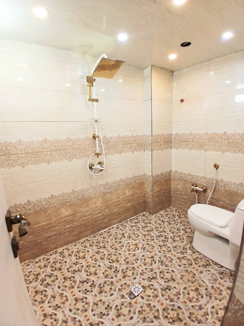 • سرویس‌های بهداشتی و حمام با روشویی مدرن و شیرآلات گلد رنگ