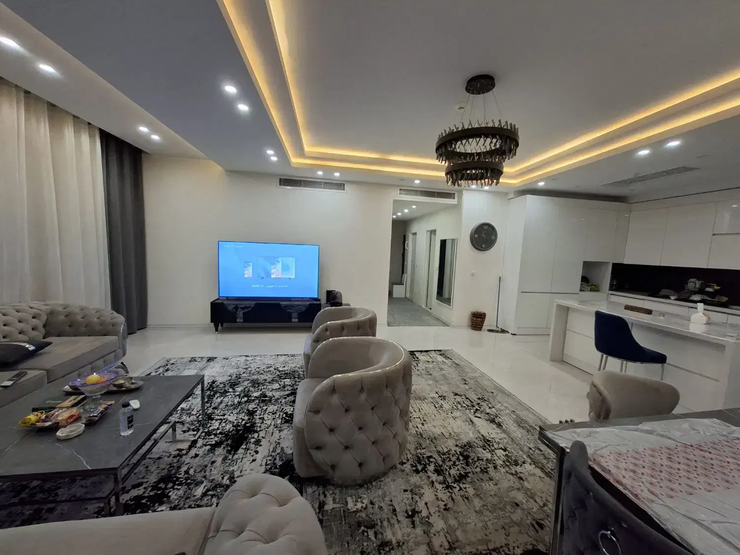 فضای داخلی این آپارتمان ۱۲۶ متری با سلیقهای مثالزدنی دیزاین شده است. کابینتهای گلاس براق و مدرن آشپزخانه، که هم زیبایی خیرهکننده و هم کاربری آسانی دارند، جلوهای خاص به فضای پذیرایی و آشپزخانه بخشیدهاند.